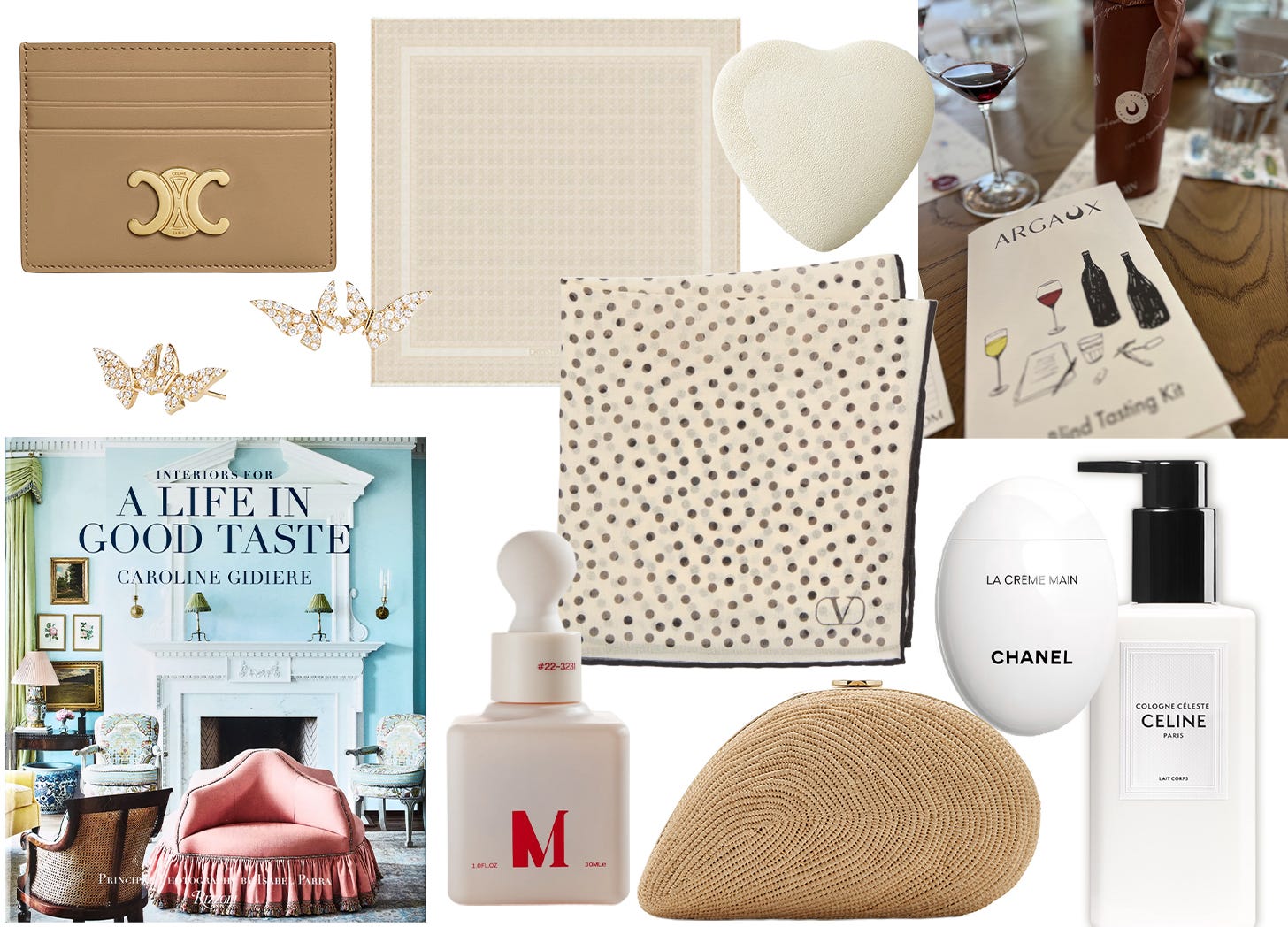 I think of my mom when I put this together. Many of the items are similar to what I gave her over the years and I know she loved them. Beautiful scarves, luxurious lotions and skin care, little boxes to hold treasures…things she appreciated but wouldn’t necessarily splurge on for herself. I personally love to receive books, and I end up gifting my favorites. Currently, that’s Interiors for a Life in Good Taste by Caroline Gidiere. It’s a book to get lost in visually with the type of details and layers I love to study. Then, there’s always experiences to give. Tickets to a show, or garden visit…or stay at home and have fun with a Blind Tasting Kit from Argaux. It’s time well spent.