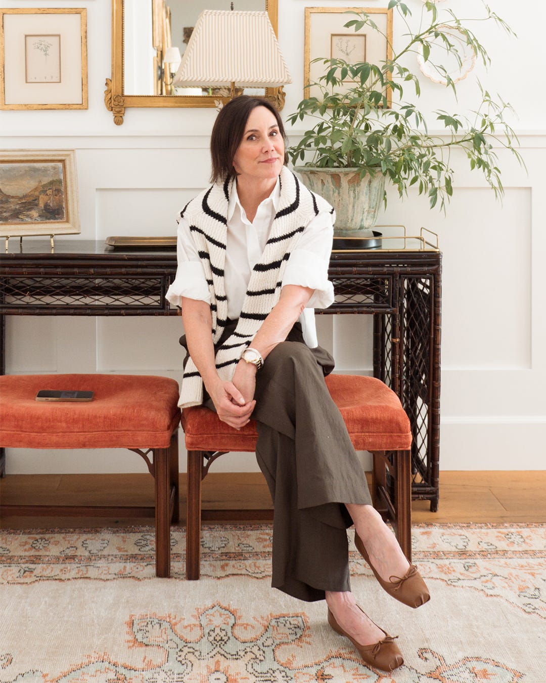 My uniform is in the stages of being tweaked. As an alternative to denim, I’m reaching for these soft khaki pants from Vince that seem to go with everything in my closet. I’ll wear them with a tonal top for a clean head to toe olive look punctuated with a stripe sweater or little black jacket.