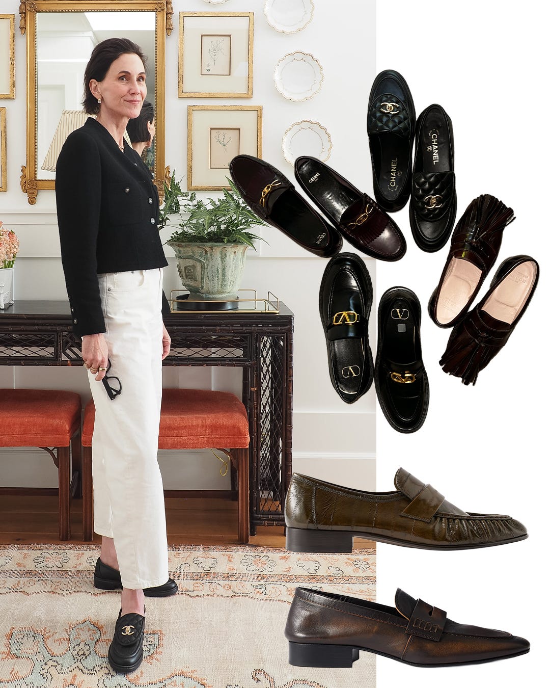 I have a bit of a loafer obsession, but warranted because I wear them so much. The styles shown are the ones in rotation most often: a lug-sole Valentino, tasseled Emilia Wickstead, Chanel quilted flap, and classic Triomphe Celine. Different in character, identical in comfort. That's a non-negotiable no matter how much I may love a style. Something slightly offbeat yet still classic would be the next to tempt me. Army green eel skin from The Row or a worn-in brown leather from Dries Van Noten are two on my wishlist.