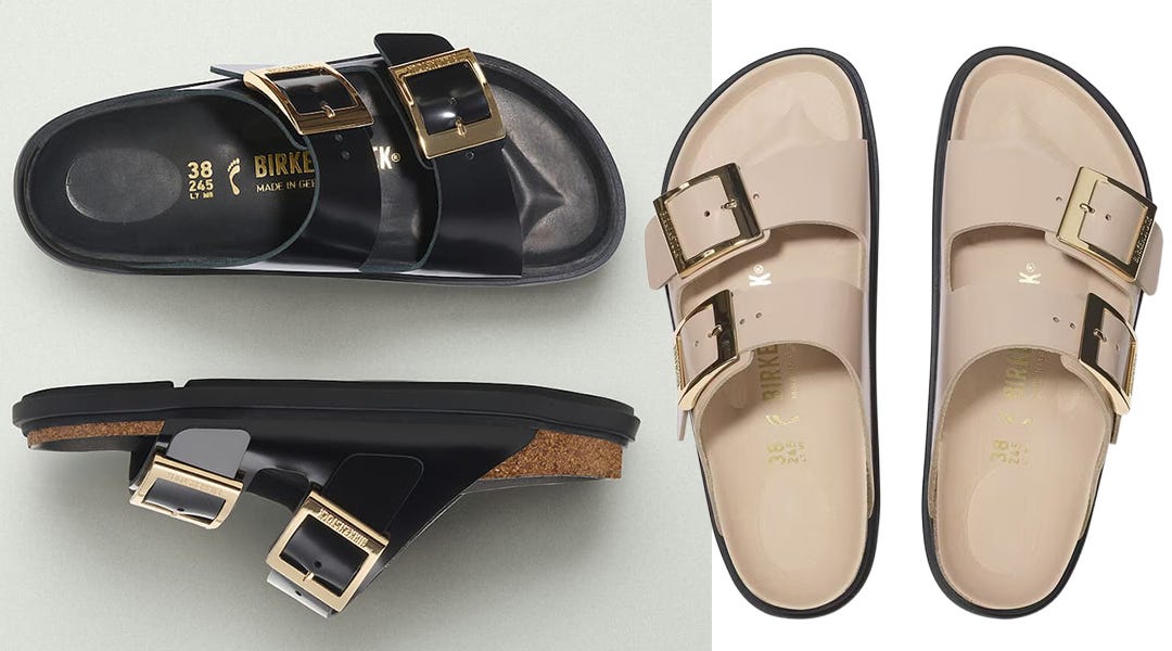 BIRKENSTOCK SANDALS: The Arizona Buckle Sandal is my go-to for complete comfort. I've learned that subtle details make all the difference in elevating the look beyond typical Birkenstock territory. The smooth leather footbed proves superior to cork - not only is it more visually appealing but infinitely more comfortable since cork tends to be harshly drying on bare feet. The new Arizona Droplet Buckle features a sophisticated, subtle teardrop edge detail and high-shine patent leather that transforms the classic silhouette into something more polished.